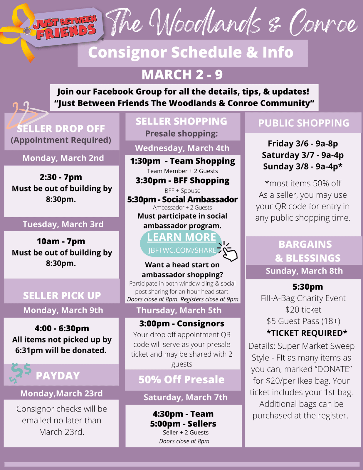 Check the schedule below to see seller shopping time! Want to shop even earlier? Join our social ambassadors - more info HERE.
